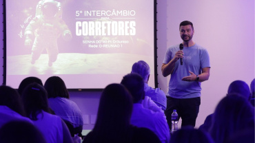 Evento de inauguração com corretores acionistas e parceiros do mercado; o CEO Alexandre Camillo Espaço inovador, com salas compartilhadas…