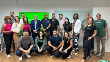 A presidente do CVG-RJ, Sonia Marra, a equipe AZOS e corretores que participaram do treinamento- Foto: Divulgação CVG-RJ promove…