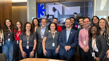 Djalma Scartezini (de terno azul), CEO da REIS, é recebido por executivos e squad de Diversidade da Sompo Sompo…